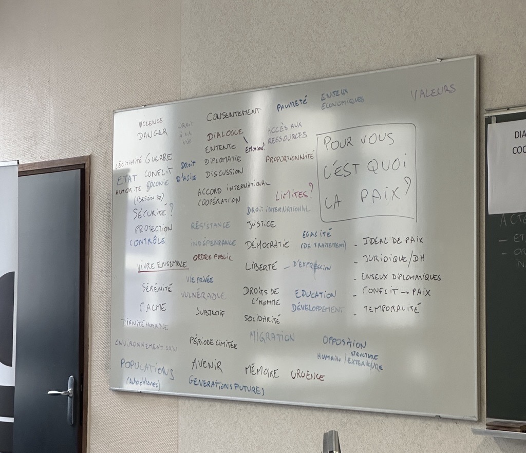 Leurs échanges ont permis d’aborder la paix non seulement comme valeur universelle, mais aussi comme enjeu professionnel pour les médias, les humanitaires et l’éducation : que signifie travailler pour la paix aujourd’hui ? Comment concilier engagement, neutralité, éthique et responsabilité ?