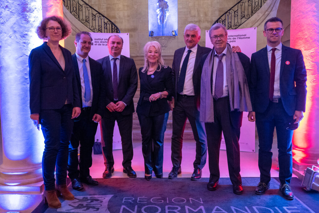 Les partenaires fondateurs de l’Institut international des droits de l’Homme et de la paix représentés par Nathalie Lailler, Bâtonnière de l’Ordre des Avocats de Caen, Lamri Adoui, Président de l’Université de Caen Normandie, François-Xavier Priollaud, Vice-président de la Région Normandie et Hervé Morin, Président de la Région Normandie, se sont succédés à la tribune pour rendre un vibrant hommage à Alain Tourret. Tous ont rappelé le travail accompli par l’avocat et homme politique qui a fondé l’Institut en 2008 en Normandie, terre symbolisant la paix, la liberté et les droits de l’Homme. Chacun ont également fait part de leur confiance envers Nicole Ameline, rappelant les liens forts qui unissent l’Institut international des droits de l’Homme et de la paix à ses partenaires.