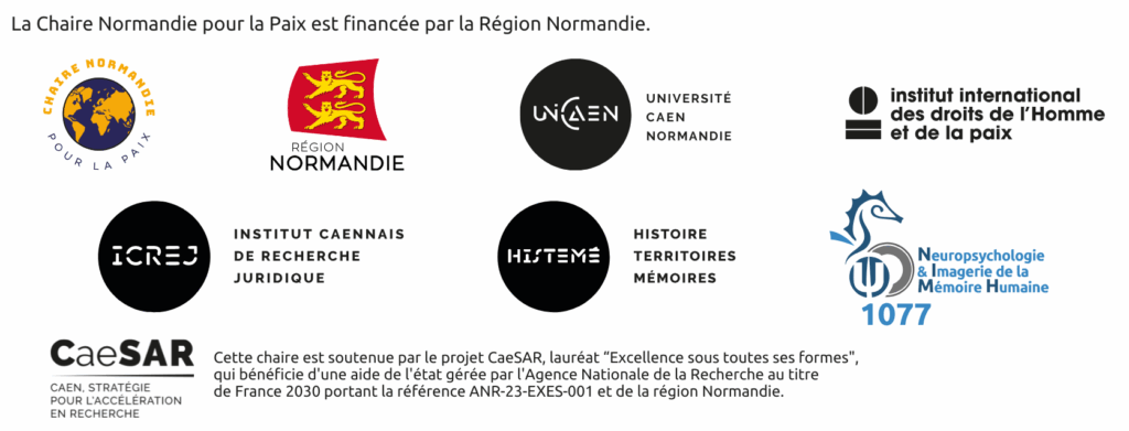 Le 18 mars 2025, l’Université de Caen Normandie, la Région Normandie et l’Institut international des droits de l’Homme et de la paix, ont annoncé le lancement de la Chaire Normandie pour la Paix, intitulée « Mémoire et
